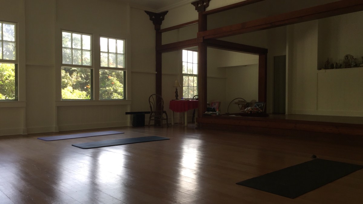 To live successfully with multiple sclerosis, you must become an artist of improvisation. You never know when (or how) your body is going to horrify you next. MS is, I dare say, a master class in mortality. Gentle reader, we are all on the same conveyor belt, heading for the same destination. Some of us just get to have a more challenging experience resisting the inertial pull as we dodge hostile takeovers on random locations throughout our nervous system. We need to be flexible. We need yoga. And that is why, every morning of my stay at the Temple of My Dreams, I’d leave the downstairs living quarters and make my way up the stairs, and then up the ramp, to the second floor entrance to the yoga studio.