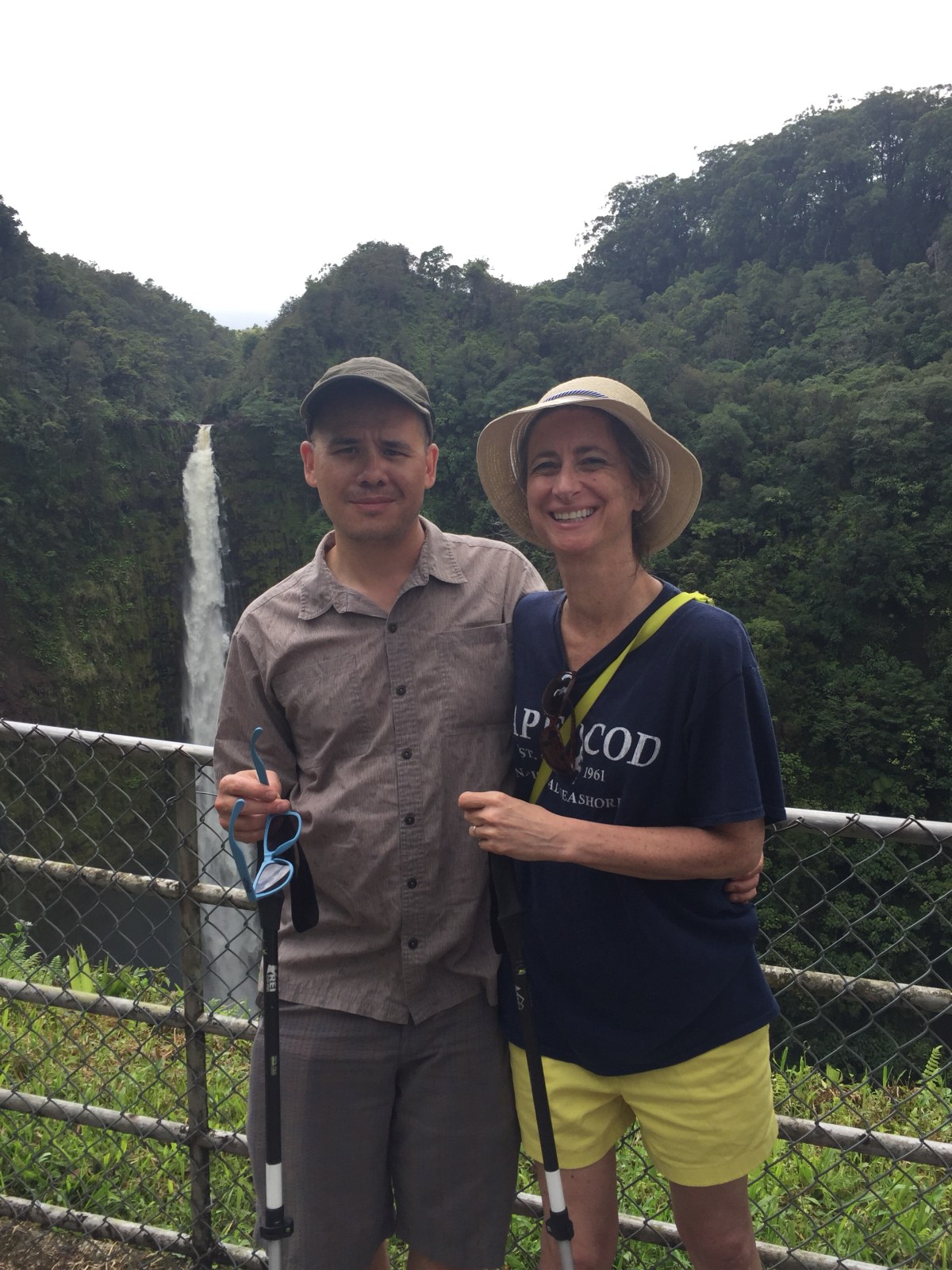 Meanwhile, the adventure my husband and son had chosen was going up in smoke—or more accurately—in vog. (Vog being the term for smoke that comes out of an active volcano.) As packages arrived at our house with backpacks and state of the art camping equipment, so daily updates arrived in our in-boxes on the steady eruption from Mauna Loa’s sister volcano, Kilauea. My husband kept expecting the eruption to end. But the goddess Pele didn’t seem to be running out of lava. As the date for our vacation grew nearer, he finally called the Park Service, and learned all the trails were closed. The men in my life would have to cancel their epic hike of Mauna Loa. No problem. They too, are flexible. They, too, have to live with MS. My husband found an achievable walk: an eight mile hike on Pu’u wa’awa’a. Achievable—for them, anyway. I hate to write that my eight mile hike days are gone forever. I’ll say this much: the day of the Father/Son hike, I would still have to find my own way.